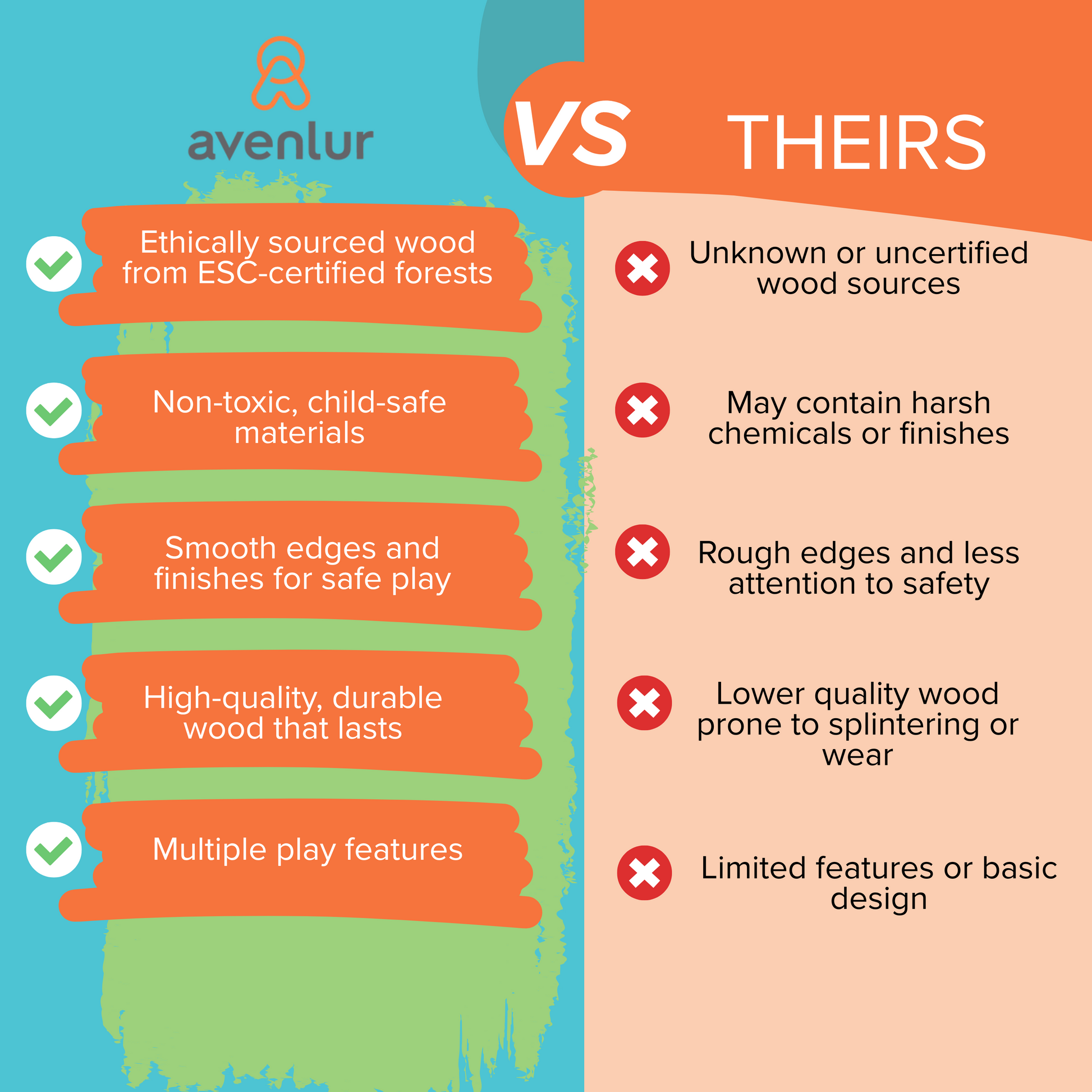 - Birch plywood; child-safe, water-based finish