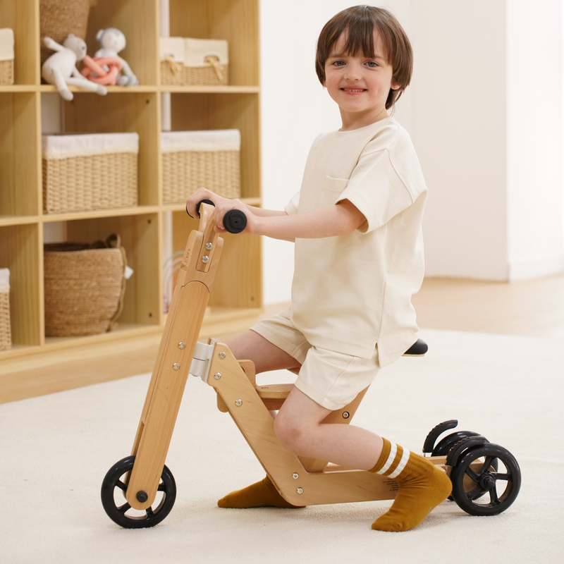 Its smooth wooden design is modern, minimal, and compact — a beautiful addition to any home that’s also built for years of adventure. With an easy-to-switch mode and child-friendly materials, Juneberry is more than a toy. It’s their first ride.