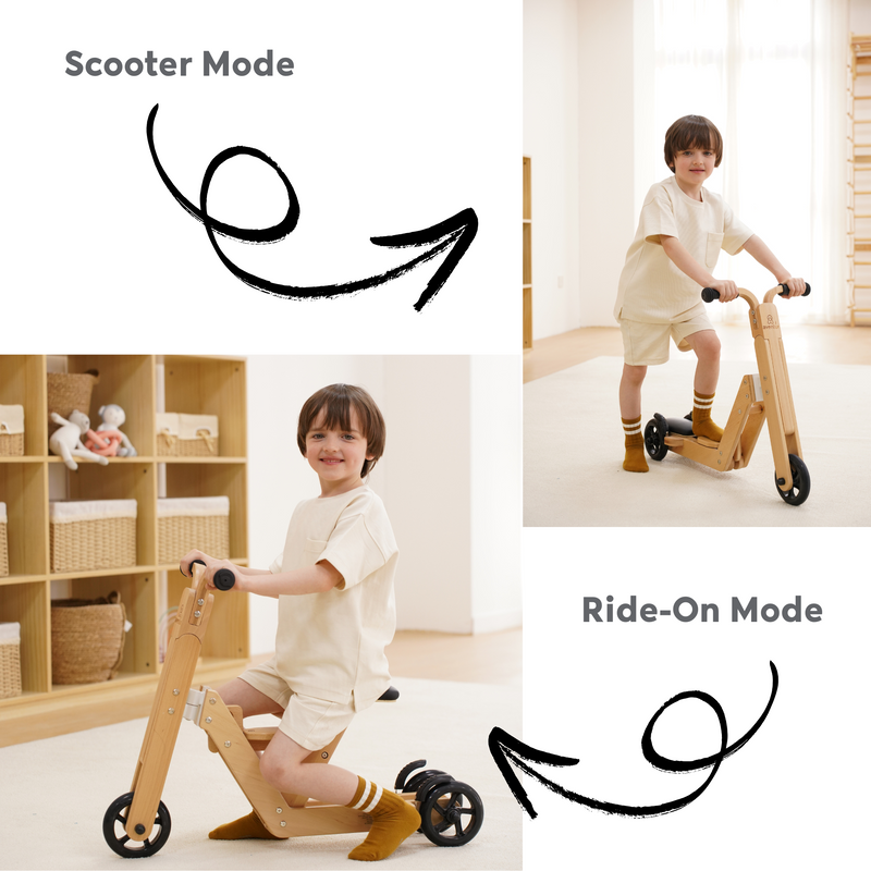 Convertible Design: Switch from ride-on bike to scooter with no tools required.