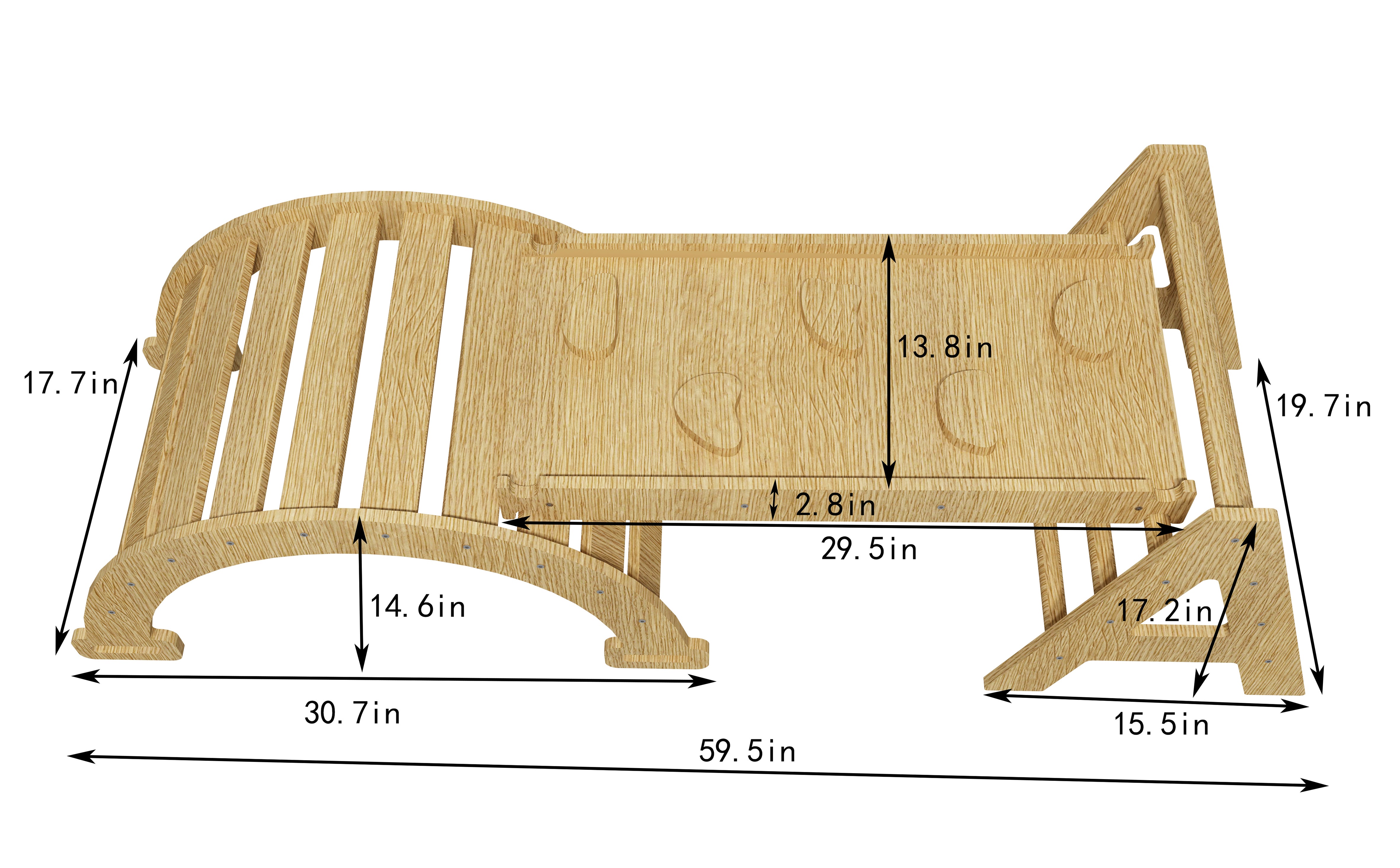 Introducing the Maple Triangle Climbing Set with Ladder – the ultimate 5-in-1 indoor playset tailored for toddlers aged 1 to 5 years. With a suggested maximum load of 132 lbs, it's designed to foster independence and enhance motor skills development in a safe environment.
