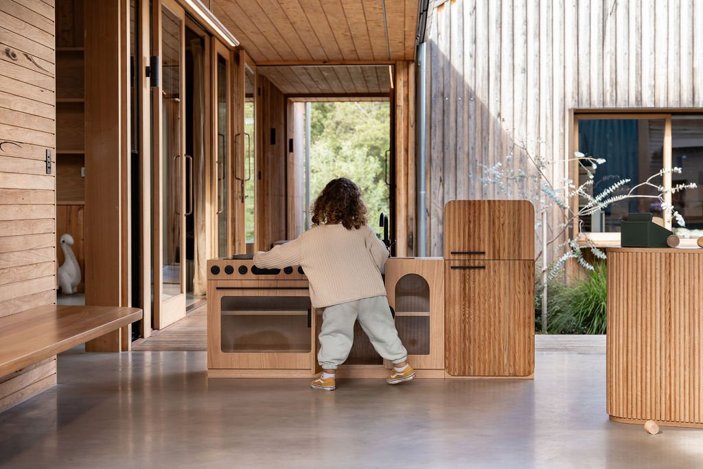 Introduce timeless charm and Montessori-inspired play to your learning space with the Avenlur Oak Fluted Fridge. Thoughtfully designed for early childhood environments, this fridge is more than a toy—it's a beautifully crafted piece of furniture that fosters imaginative exploration and independence.