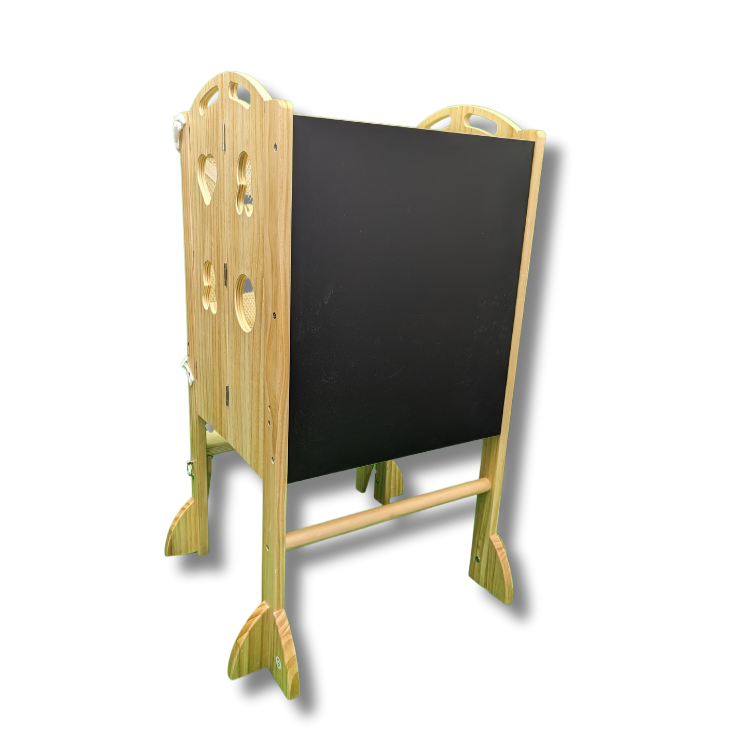 🔁 3-in-1 Versatility – Transforms into a kitchen tower, chalkboard, and step stool.